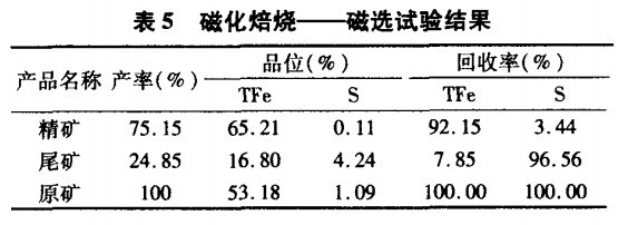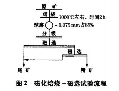 由于采用該工藝需要購買價格較高的磁選機設(shè)備,而且經(jīng)過磁選的鐵精礦品位不是很高,其褐鐵礦售價也不是高,產(chǎn)品只能出售給小型鋼鐵企業(yè)。為了提高產(chǎn)品質(zhì)量,在經(jīng)過強磁選的基礎(chǔ)上還進(jìn)行了磁化焙燒試驗。
