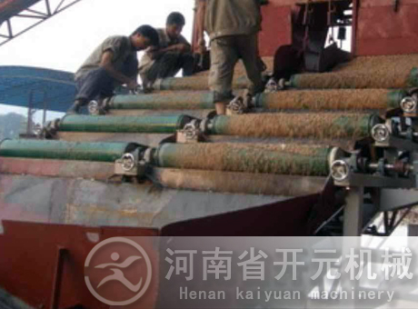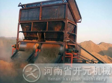 我公司下屬的旱地鐵砂干式磁選機(jī)團(tuán)隊專業(yè)生產(chǎn)旱地鐵砂干式磁選機(jī),也可叫做鐵砂磁選旱船,該機(jī)具有處理量大,效率高,易于維修等優(yōu)點,與濕式磁選機(jī)不同之處在于,該機(jī)為干式選礦,解決了旱地鐵砂礦難處理的問題。本機(jī)械為被動移動式地面篩沙,篩石子專用機(jī)械,機(jī)械上料。每小時處理原料60-120立方米,配柴油機(jī)或電動機(jī)。