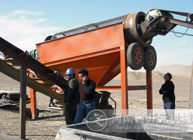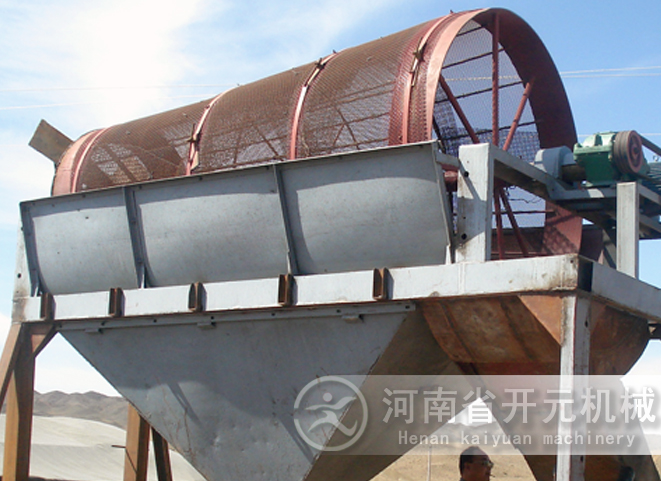 滾筒裝置傾斜安裝于機(jī)架上。電動(dòng)機(jī)經(jīng)減速機(jī)與滾筒裝置通過聯(lián)軸器連接在一起,驅(qū)動(dòng)滾筒裝置繞其軸線轉(zhuǎn)動(dòng)。當(dāng)物料進(jìn)入滾筒裝置后,由于滾筒裝置的傾斜與轉(zhuǎn)動(dòng),使篩面上的物料翻轉(zhuǎn)與滾動(dòng),使合格物料(篩下產(chǎn)品)經(jīng)滾筒后端底部的出料口排出,不合格的物料(篩上產(chǎn)品)經(jīng)滾筒尾部的排料口排出。由于物料在滾筒內(nèi)的翻轉(zhuǎn)、滾動(dòng),使卡在篩孔中的物料可被彈出,防止篩孔堵塞。滾筒篩砂機(jī)、滾筒篩分機(jī)與滾筒篩的原理構(gòu)造幾乎相同,是人們對它的認(rèn)識和叫法上存在差異。